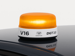 La V16 és una llum intermitent de color groc amb visibilitat de 360º, pensada per substituir els clàssics triangles d’emergència. Es col·loca a la part més alta i visible del vehicle (normalment al sostre) mitjançant un imant, sense que el conductor hagi de sortir del cotxe.